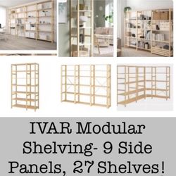 IKEA Ivar Shelving Unit Components.20”x17/35”W Shelves,70.5” Side Panels.MSRP $809,Garage,Workshop Storage- Create 1,2,3 ,4 OR 8 Unit Shelf,Wine Rack$179San Diego, CA