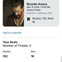 Ricardo Arjona concert tickets$750Irwindale, CA