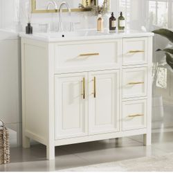 Assembled New Solid Wood Frame 36" Bathroom Vanities Cabinet with Undermount Left-Located Sink, Three Drawers and Two Doors, Solid Wood & MDF Board, O$295Artesia, CA