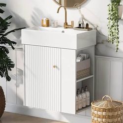 Assembled New 22" Wall-Mount Bathroom Vanity w/ Ceramic Sink Floating Sink Vanity Left Door Opening$145Artesia, CA