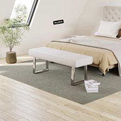 55”Bedroom Bench, Bed end upholstered Bench, Indoor Corner Small Footstool with Metal Legs, for Kitchen entryway Dining Room ,White$55El Monte, CA