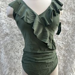 Blooming Jelly Green Ruffled One-Piece Swimsuit size medium $13Bell Gardens, CA