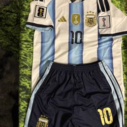 New Argentina Messi #10 Jersey Shorts Set FIFA Patches youth 20,22,24,26,28$40Buena Park, CA