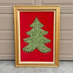 Christmas Tree Vintage Mid Century Jewelry Green Glass Lighting Wood Framed Brooch$20Brea, CA