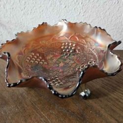 Antique Carnival Glass Purple 3 footed Candy Dish Bowl 8"$25Downey, CA