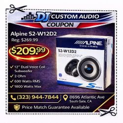 Alpine S Series 12" Dual Voice Coil Subwoofer 1800 Watts S2-W12D2 Bass Speaker 🚨 Payment Options Available 🚨 No Credit Needed 🚨 $1Hawaiian Gardens, CA