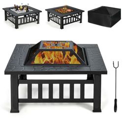 3 in 1 Outdoor Fire Pit Table with BBQ Grill and Rain Cover 32-in W 10000 Maximum BTUs Steel Square$80Carson, CA