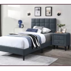 ✅️✅️Charcoal brushed linen fabric upholstered twin bed frame set vertical channels tufted headboard✅️✅️$98Bellflower, CA