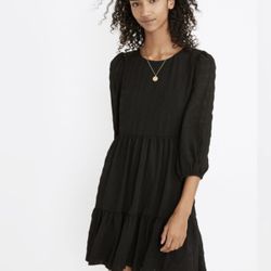Madewell Petite Puff-Sleeve Ruffle-Hem Mini Chiffon Dress Black 4P$20Alhambra, CA