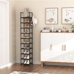 Tall Narrow Shoe Rack for Entryway, 10-Tier Sturdy Metal Shoe Shelf Storage 10-15 Pairs of Shoes and Boots, Space Saving Corner Shoe Rack Organizer fo$15South Gate, CA