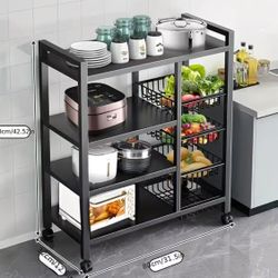 New! Movable Storage Rack, Adjustable 4-storey Kitchen Shelf with 3 Wire Baskets, Kitchen Organizer And Storage, Metal Shelf Rack with Wheels, Suitabl$25Los Angeles, CA