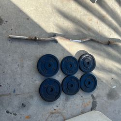 Curl Bar w Weight Plates Standard 1” Curling Bar $65La Canada Flt, CA