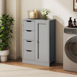 New Bathroom Floor Storage Cabinet, Wooden Storage Organizer with 4 Drawers and 1 Door, Freestanding Pantry Cabinet with Adjustable Shelves for Bathro$50La Mirada, CA
