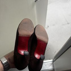 Christian Louboutin Brown Suede/Leather Laser Cut Print Kitten Heels$250Glendale, CA