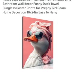 Pink Ducks Bathroom Canvas Wall Art Cute Girls Bathroom Wall decor Funny Duck Towel Sunglass Poster Prints for Preppy Girl Room Home Decortion 16x24in$15Alhambra, CA