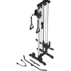 ER Kang Cable Station Wall Mount, 18in Pulley Tower, Dual Pulley System, High & Low Cable Machine, LAT Pull-Down & Row Tower with Flip-Up Footplate, H$110El Monte, CA