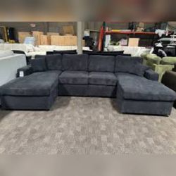 Black corduroy double chaise sectional sofa $419Long Beach, CA
