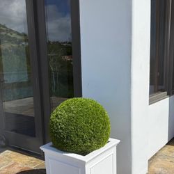 White Outdoor Planter + Artificial Topiary Ball$200Malibu, CA