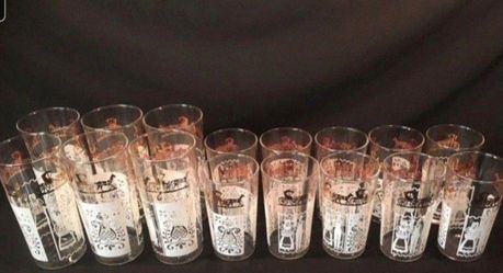1950s Anchor Hocking glassware Gold n White Pennsylvania Dutch Collection. Tall Tumblers and Juice Glasses. Antique classics. SEE FULL AD BELOW$35West Covina, CA