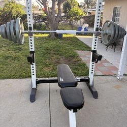 Fitness gear bench press shoulder press and you can use the back for squats comes with 300 pounds Olympic weight set including bar and clips$350Lake View Terrace, CA