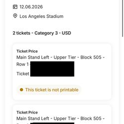 Paraguay Vs USA world Cup Tickets$2,800Montebello, CA