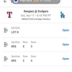 Dodgers Vs Rangers Saturday 4/11, 2 Tix Sec. 152 Lodge$100Artesia, CA