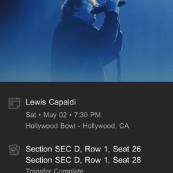 LEWIS CAPALDI CONCERT TICKETS$200Corona, CA