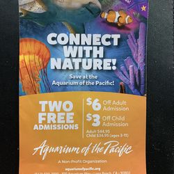 TWO FREE ADMISSION TICKETS TO THE AQUARIUM OF THE PACIFIC EXPIRES 3/31/26 Long Beach, CA$35Huntington Beach, CA