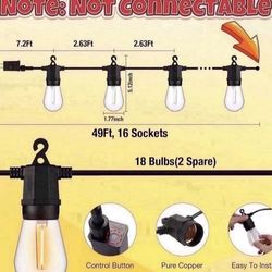 Outdoor String Lights 48Ft, Outdoor Lights Waterproof with 18 Shatterproof Bulbs, Personalized 8 Lighting Modes Remote Control Patio Lights for Patio$20El Monte, CA