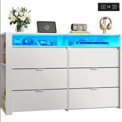 Modern White Dresser w/ LED Lights & TV Stand – 6 Drawers + Side Shelves$200Irwindale, CA
