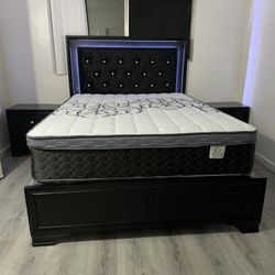 Queen Size Bed Frame / Mattress Included. New In A Box. Cama Color Negra Nueva En Caja Colchon Incluido $599Chino, CA