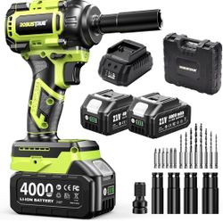 Cordless Impact Wrench, 590Ft-lbs (800N.m) Brushless 1/2 inch, 2800RPM High Torque Impact Gun, 2x 4.0Ah Battery, Charger, 4 Sockets, Electric Impact W$69Orange, CA