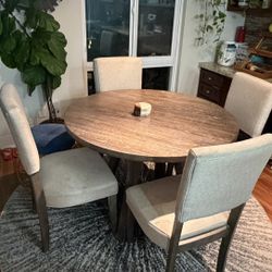 Round Dining Table + 4 Chairs + Rug — $300 OBO$300Costa Mesa, CA