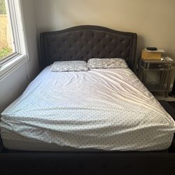 Grey Upholstered Bed Frame with Nailhead Detail- Queen Size$400Yorba Linda, CA