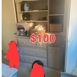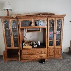 Oak ENTERTAINMENT CENTER, TWIN CURIO CABINETS$10Cypress, CA