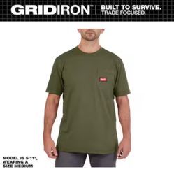 Milwaukee Men's X-Large Green GRIDIRON Cotton/Polyester Short-Sleeve Pocket T-Shirt=Milw-32$15Anaheim, CA
