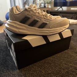 Comfy Adidas sneakers, light beige/tan color with black stripes. Has Cloudfoam cushioning, super soft. Looks like new, no wear at all. size 7 women as$60Montclair, CA