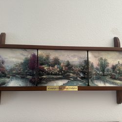 Thomas Kinkade “Lamplight Village” Set of 3 Collector Plates with Wood Display Shelf-Limited Edition$50Corona, CA