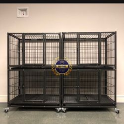 (Brand New) $370 (Set of 2) Stackable Dog Cage 41x31x65” Heavy Duty Kennel w/ Plastic Tray $370El Monte, CA