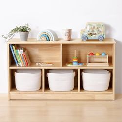 OOOK Rubber Wood 5-Compartment Montessori Shelf, 43.3" L, 2-Tier Toy Organizers and Storage, Wooden Storage Cabinet for Kids Room, Playroom, Nursery, $60El Monte, CA