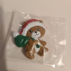 Vintage Russ Christmas Bear Pin Brooch Wearing a Red and White Santa Hat and Carrying a Green Sack$5Montclair, CA