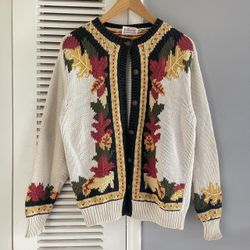 Vintage 90’s ORVIS Autumn Fall Leaves Cardigan Knit Sweater$40Whittier, CA