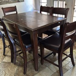 Counter height 6pc dining set solid wood medium brown 42-60”table (leaf included) and 4 matching chairs $599 (was $799, msrp $1,299) pick up or delive$599Montclair, CA