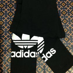 ADIDAS TRF Trefoil Track Running Black Leggings With White Logo On Bottom Of Pant Legs$30Orange, CA