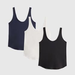 Quince Cotton Modal Double Scoop Neck Tank 3 Pack Black Navy White M NWT$35City Of Industry, CA