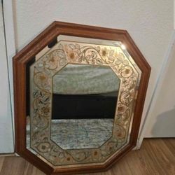 Vintage Octagonal 28x34" Wall Mirror Pastel Floral Etched Windsor Art -$150Downey, CA