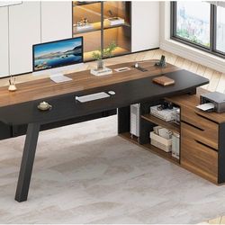 SEDETA 71" Executive Desk with File Cabinet, Large Office Desk with Drawers and Shelves, L Shaped Computer Desk with Power Outlets, Business Furniture$120Ontario, CA