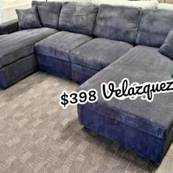 ✅️✅️4 pc Grey corduroy fabric sectional sofa with storage chaise and love seat and pop up sleep area in center USB charging✅️✅️$698El Monte, CA