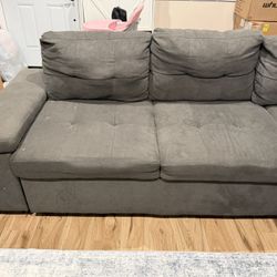 ✅️✅️4 pc Grey boucle fabric sectional sofa with storage chaise and love seat and pop up sleep area in center drop down tray tables✅️✅️$748Anaheim, CA