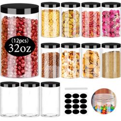 SLifeJars Clear Plastic Jars 32oz 12Pack Big Round PET Plastic Containers with Black Screw On Lids Reusable Empty Storage Jars with Lid Clear Containe$25Santa Fe Springs, CA